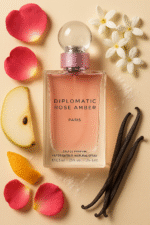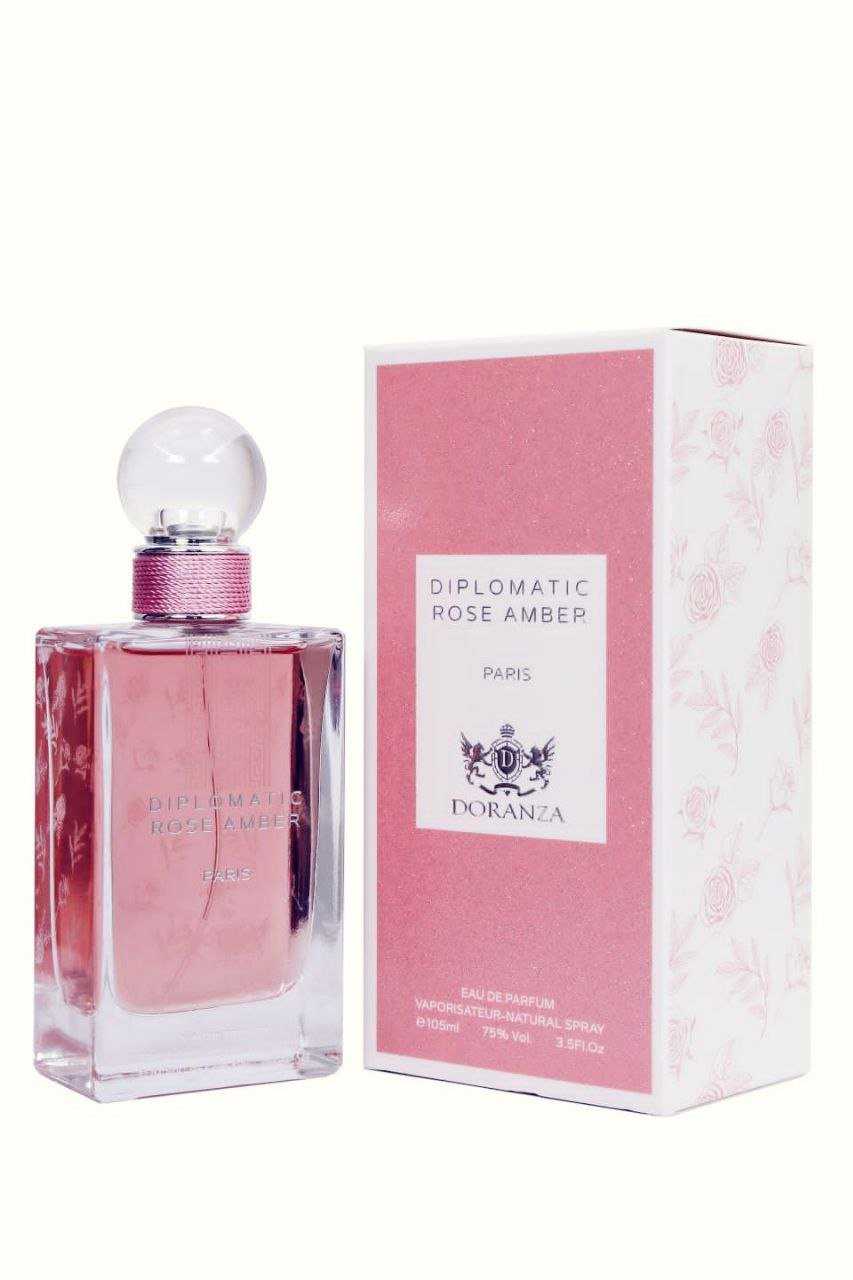 Experience Diplomatic Rose Amber Eau de Parfum — a luxury floral-musk fragrance that blends rose petals, white musk, and ambered vanilla for an irresistibly elegant and timeless finish.